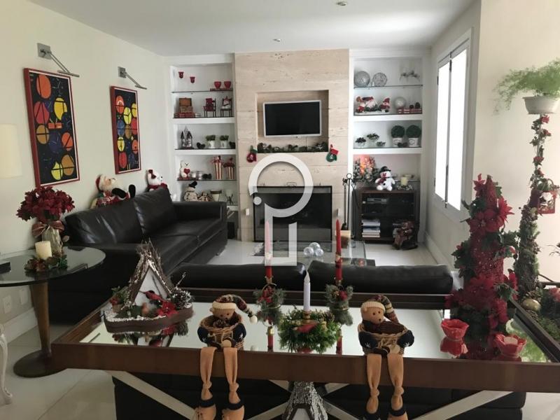 Sala com Três Ambientes: Perfeita para receber amigos e familiares em grande estilo, com espaços bem definidos para estar, jantar e lareira, criando uma atmosfera acolhedora.